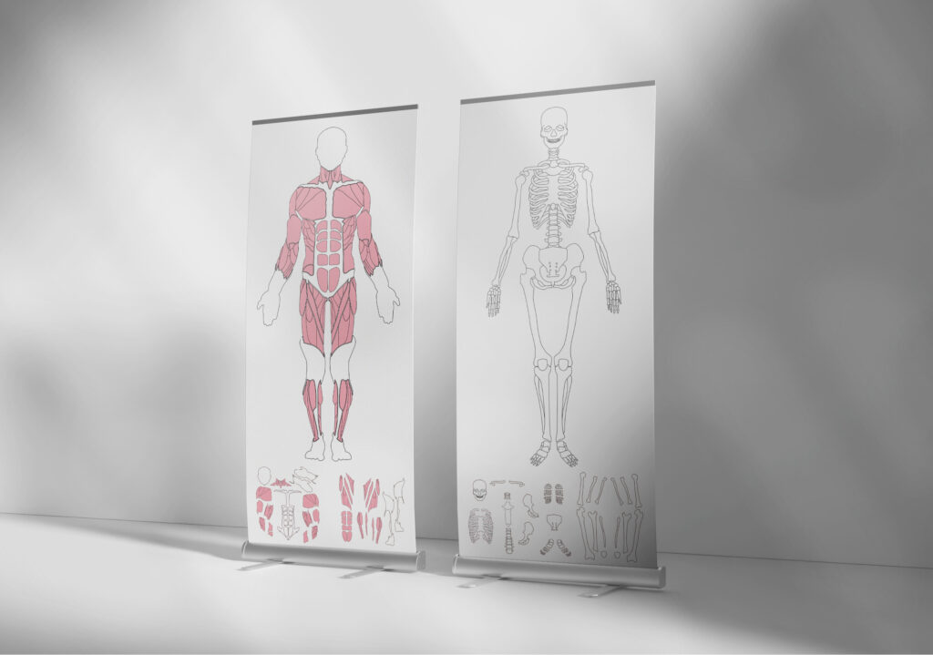 Anatomical life-size layouts portraying the human muscular and skeletal systems were conceptualized and designed as a puzzle. Each of the pieces were designed and placed apart in the project deliverable, such that they can be cut out, tagged with their corresponding name and much like a jigsaw, arranged in their correct order.